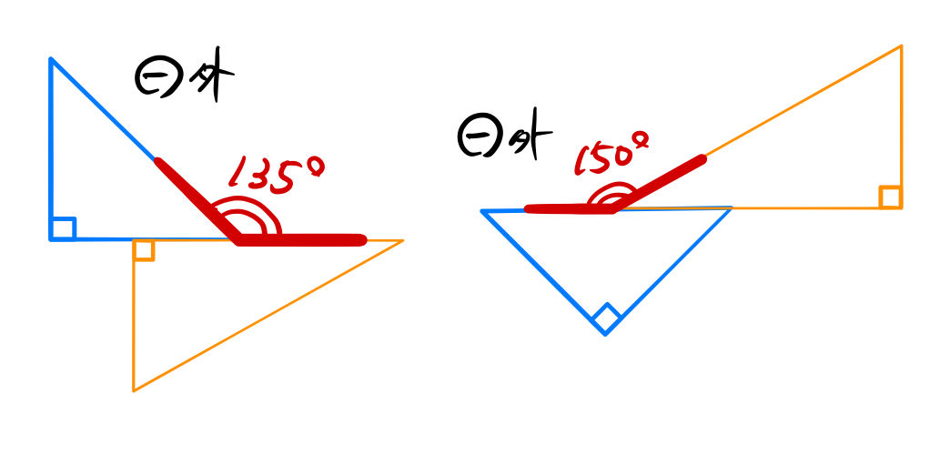 2つの三角定規の場合(外角は使わない)