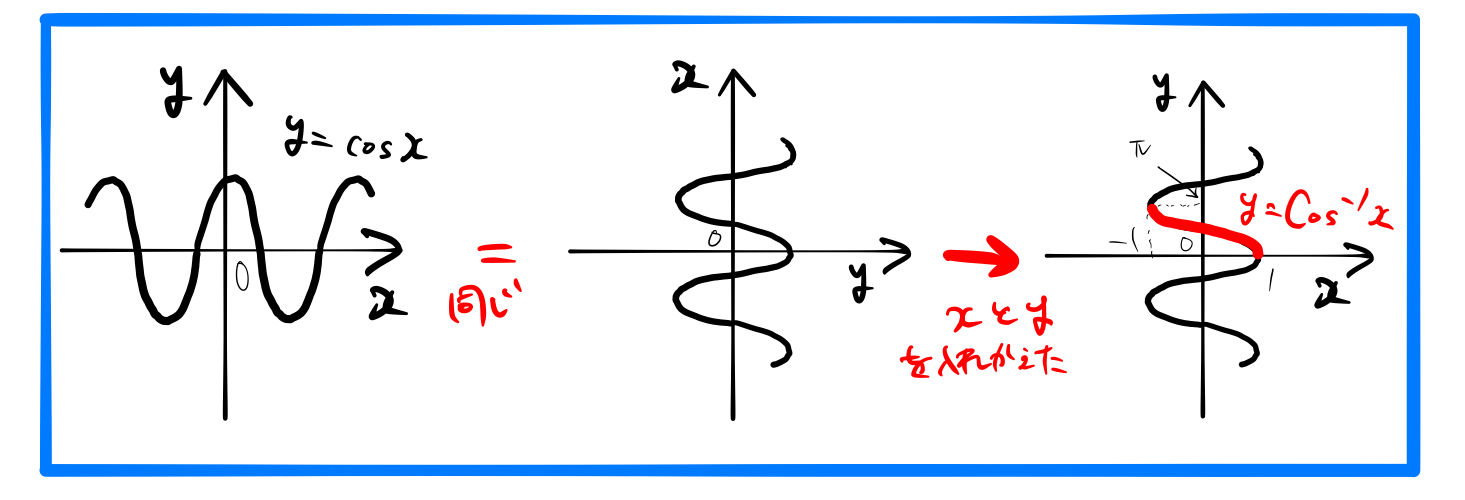 である。読み方はそれぞれ、アークサイン、アークコサイン、アークタンジェントである。絵は下の通り。