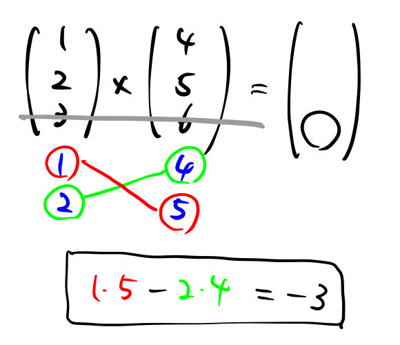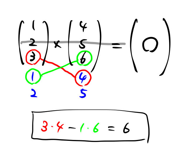 外積・内積の計算は縦ベクトルで書くと間違いにくい。掛け合わせるべき数字が隣にあると、視覚的に間違えにくいからである。