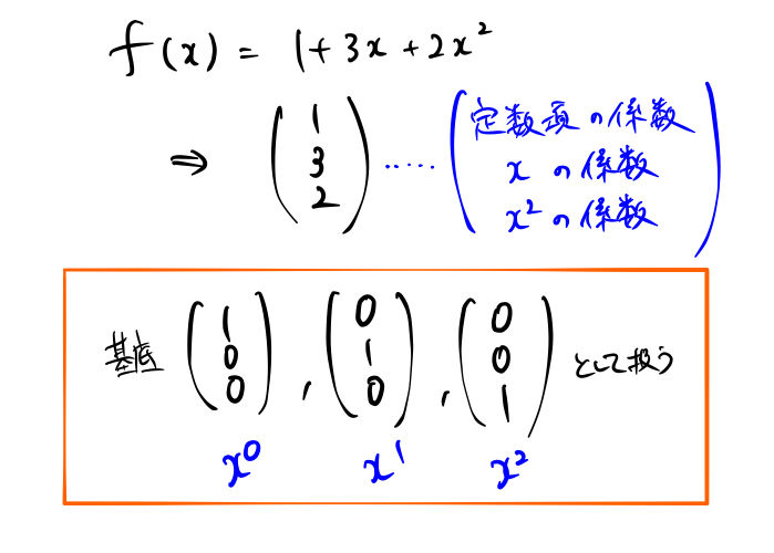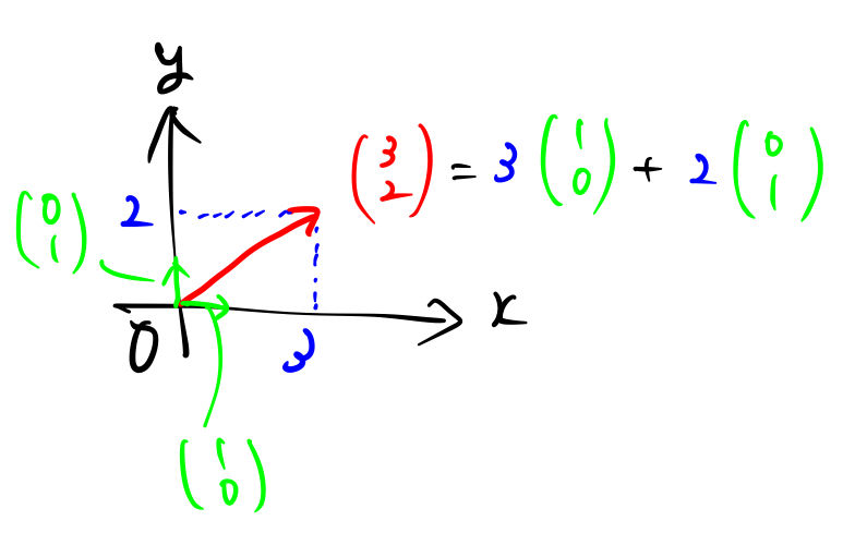 個の基底を用いて表すことができる。このように基底を定数倍して足し合わせることで任意のベクトルを表現することを「線型結合」という。