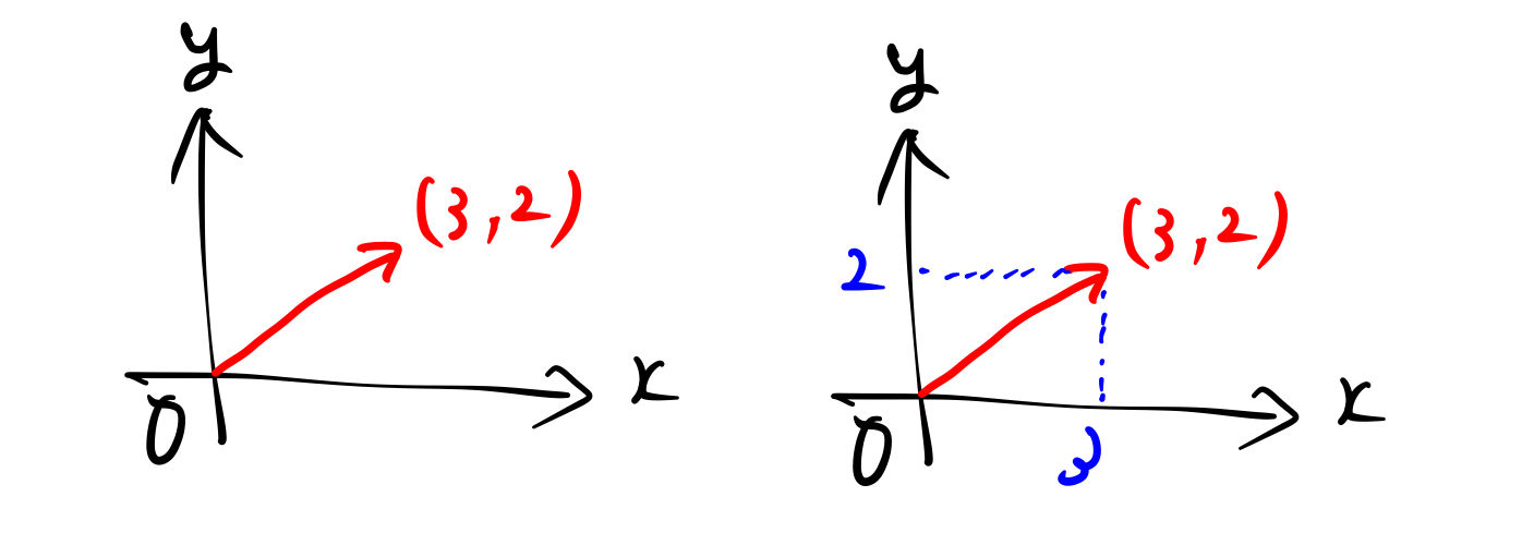 である。この2つの基底ベクトルにより、2次元平面に存在する任意のベクトルを表すことができる。